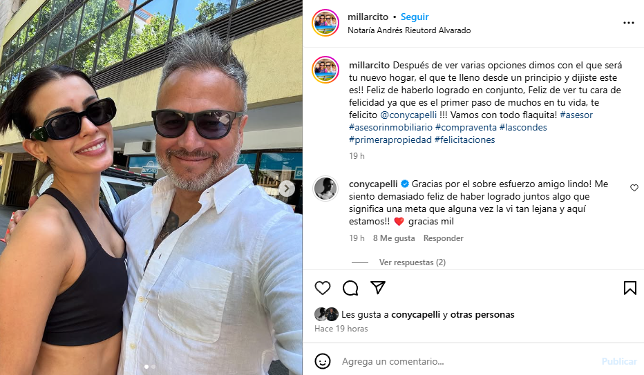 Por otra parte, el amigo y asesor inmobiliario que etiquetó en su Instagram, compartió un post en la misma red donde celebró el nuevo paso de Cony.