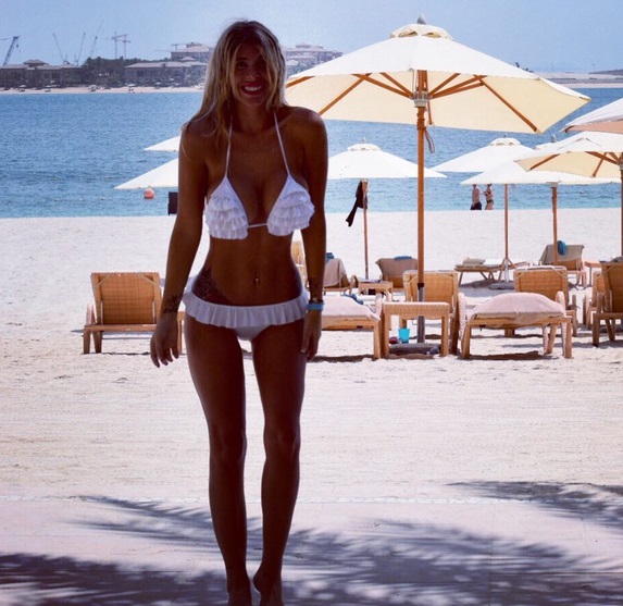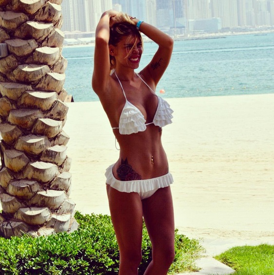 La prenda deja ver parte de los atributos de la diseñadora de vestuario que lleva largos años radicada en Emiratos Árabes junto a sus trillizas y marido.