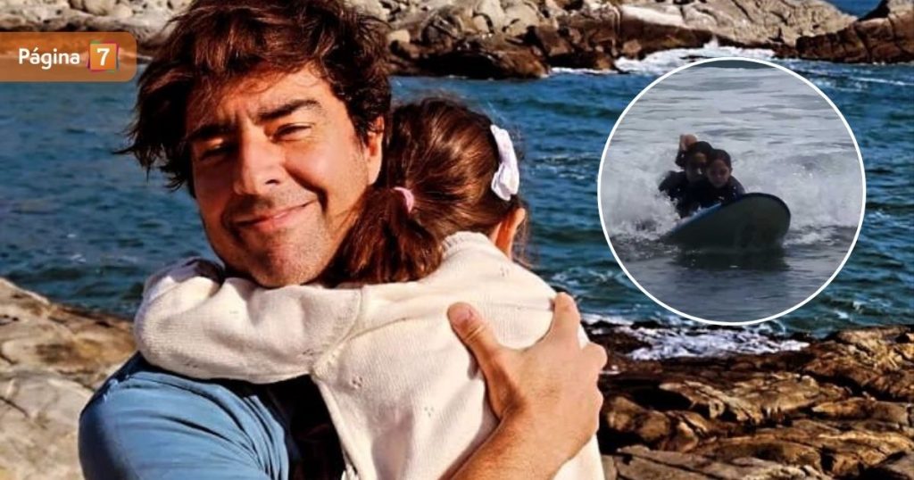 “Mi hija de 5 años por primera vez sobre la tabla. Papá sin necesidad de babero en el agua. Nada me puede hacer más feliz en el mundo que esto“, escribió Cristián Riquelme.