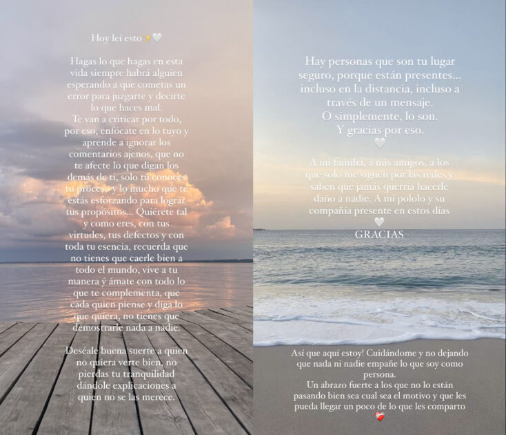 Así, sin aludir directamente al conflicto, la influencer escribió en una segunda imagen para agradecer a sus más cercanos.