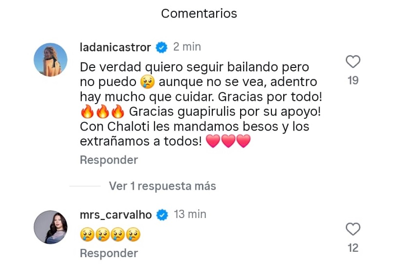 “De verdad quiero seguir bailando, pero no puedo. Aunque no se vea, adentro hay mucho que cuidar”, escribió.