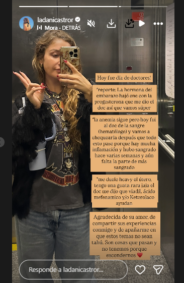 En una historía, Daniela Castro informó que este sábado le tocó ir al médico para evaluar cómo seguía de salud.