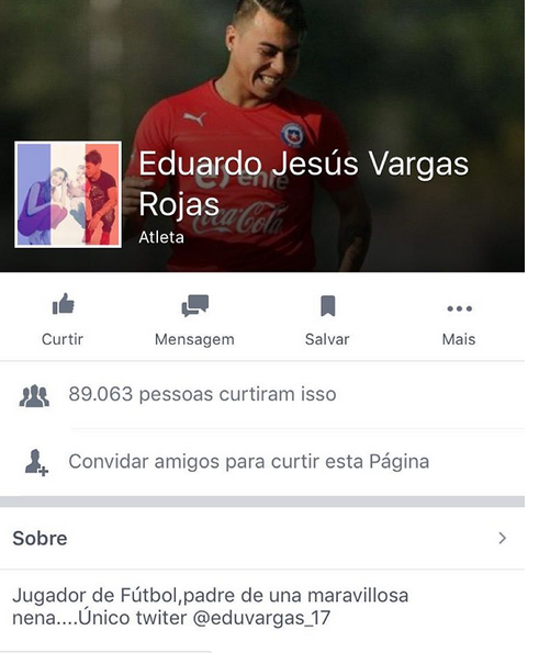Cada vez la cuenta de Facebook de “Eduardo Jesús Vargas Rojas” suma y suma seguidores. Actualmente tiene más de 89 mil fans que creen que se trata del jugador de la selección por el nombre y sus respectivas fotos de perfil y portada. El problema es que se trata de una cuenta falsa y mal intencionada, tal como lo dio a conocer la guapa brasileña a través de una denuncia en Instagram.