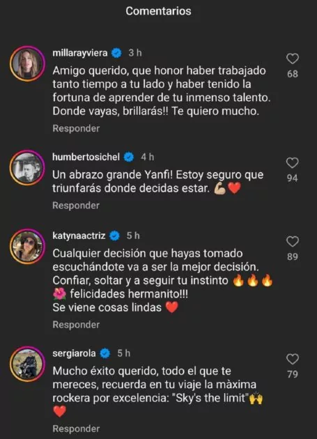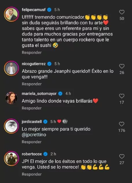 Rápidamente, la publicación de Jean-Philippe anunciando su salida de CHV se llenó de mensajes de cariño y apoyo de parte de varios rostros de televisión.