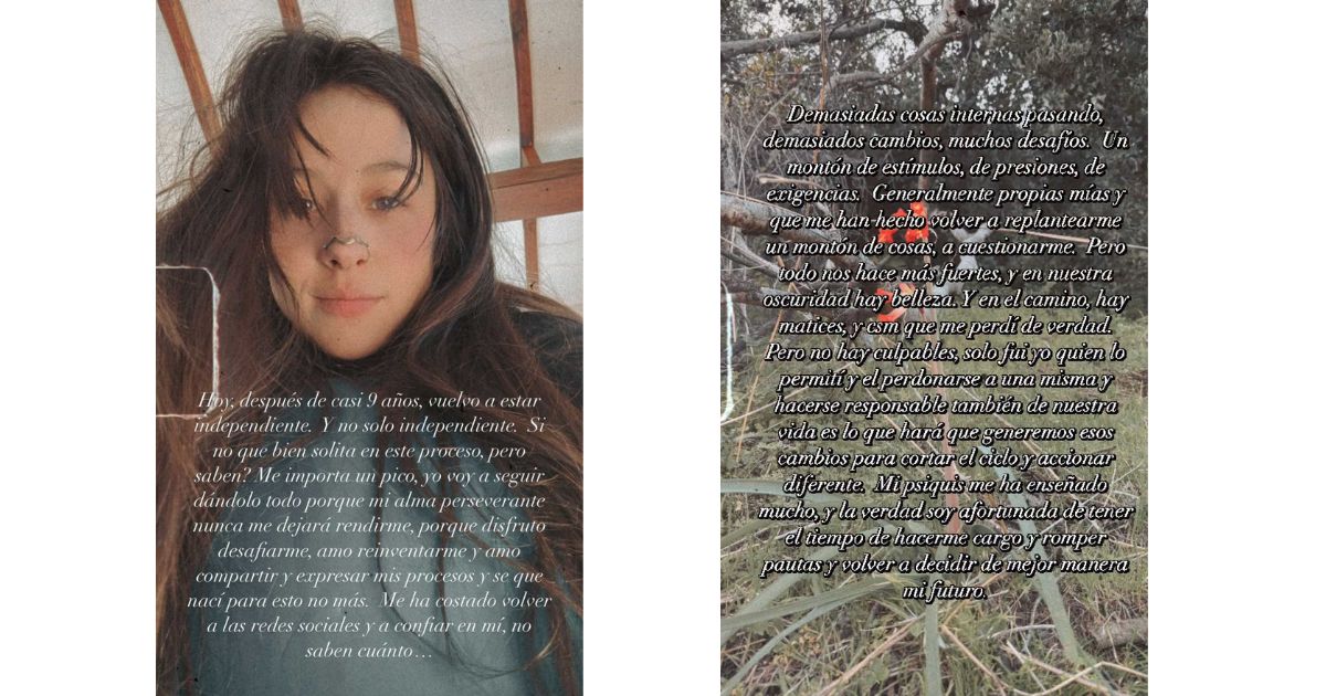 “Hoy, después de casi 9 años, vuelvo a estar independiente. Y no solo independiente. Si no que bien solita en este proceso, pero, ¿saben? Me importa un pic…”, escribió en sus historias.