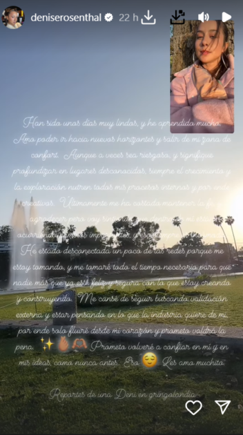 De igual forma, Denise aseguró: “Me cansé de seguir buscando validación externa, y estar pensando en lo que la industria quiere de mí“.