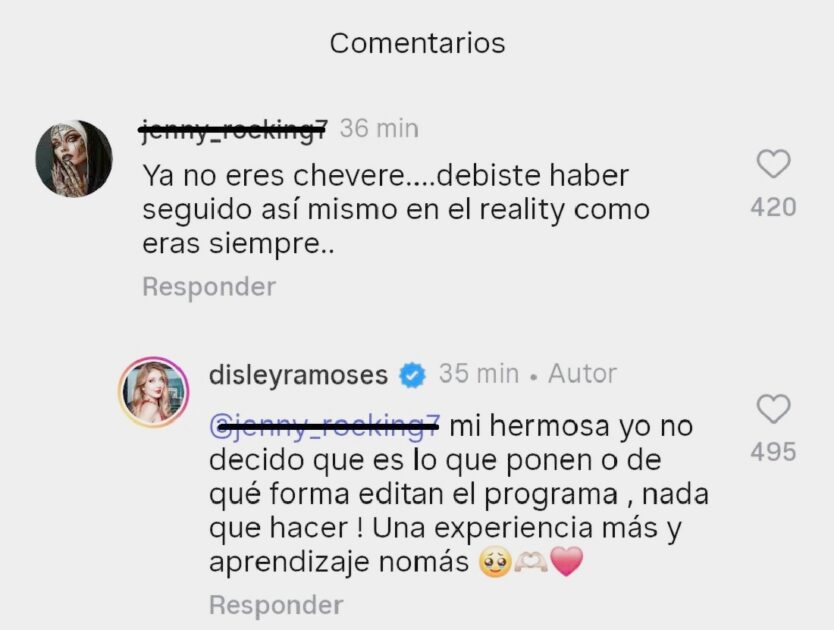 En otro de los comentarios que recibió Disley en la publicación de Instagram, una usuaria aseguró que “ya no eres chévere”.