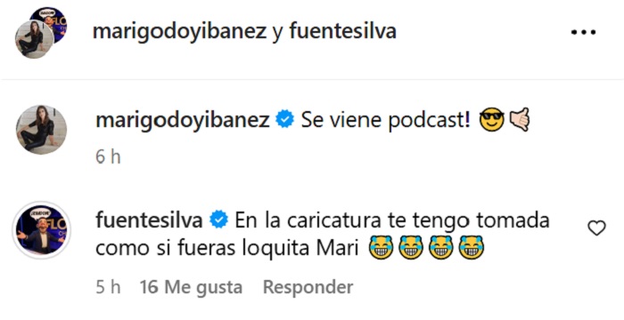 “En la caricatura te tengo tomada como si fueras loquita, Mari” , le escribió a su compañera.