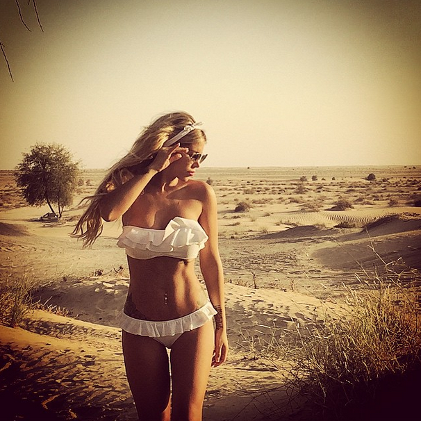 En esta oportunidad se trata de dos estáticas posando en el desierto, eso sí, una es menos sensual que la otra debido a un particular percance.