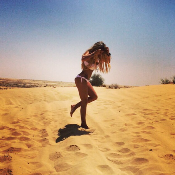“Esta prometía ser una hermosa foto súper posada y creyéndome súper mina …. Hasta 1 segundo y medio que toque esa arenita … en pleno desierto y sin hawaianas !!!! no podi ser tan h….a María José!!!! (sic), exclamó la chilena en su cuenta de Instagram.