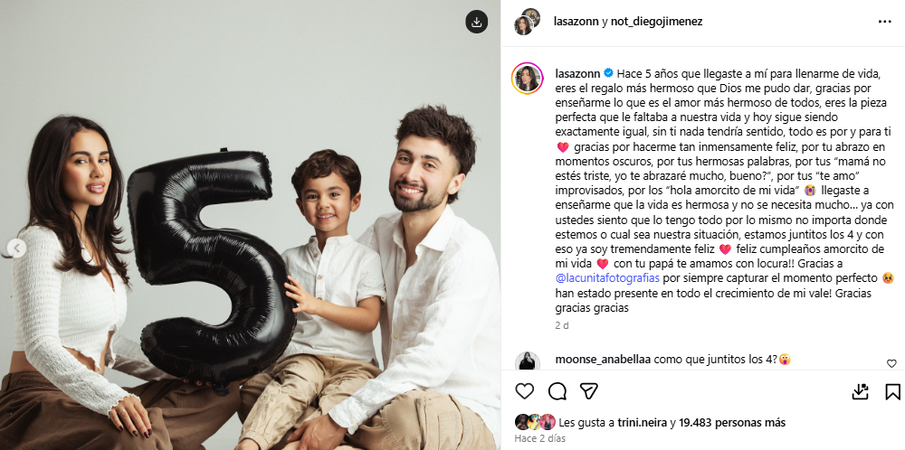 En la actualidad, Diego tiene 25 años y está feliz junto a la familia que ha formado con la influencer y su pequeño hijo.