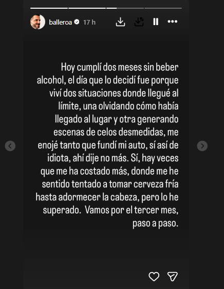 Finalmente, reflexionó en torno a las dificultades que ha enfrentado con esta decisión. “Sí, hay veces que me ha costado más, donde me he sentido tentado a tomar cerveza fría hasta adormecer la cabeza, pero lo he superado. Vamos por el tercer mes, paso a paso”, cerró.