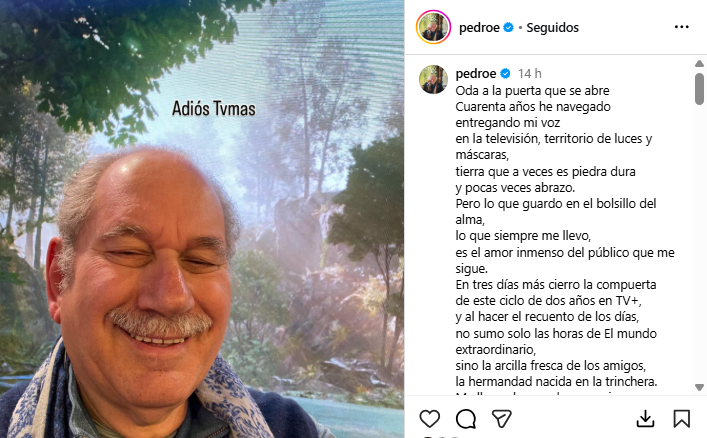 Si bien Pedro Engel reapareció el lunes pasado en su programa en TV+ tras sufrir complicaciones de salud, este miércoles confirmó su salida del canal.