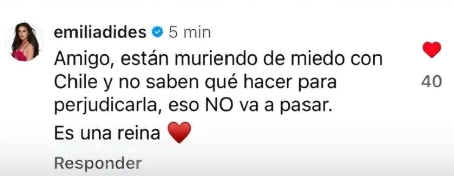 Ante el revuelo, Emilia Dides decidió respaldar públicamente a Moll en los comentarios de un video que explicaba la polémica.