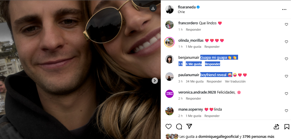 Si bien no especificó que se tratara de su nuevo novio, recibió comentarios que así lo evidenciaban “Guapa mi guapa”, escribió Benjamín Numair, quien sería el misterioso galán; mientras que su madre comentó con el emoticón de fuego.