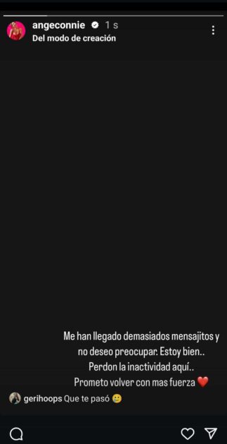 “Perdón por la inactividad aquí… Prometo volver con más fuerza“, cerró con un emoji de corazón.