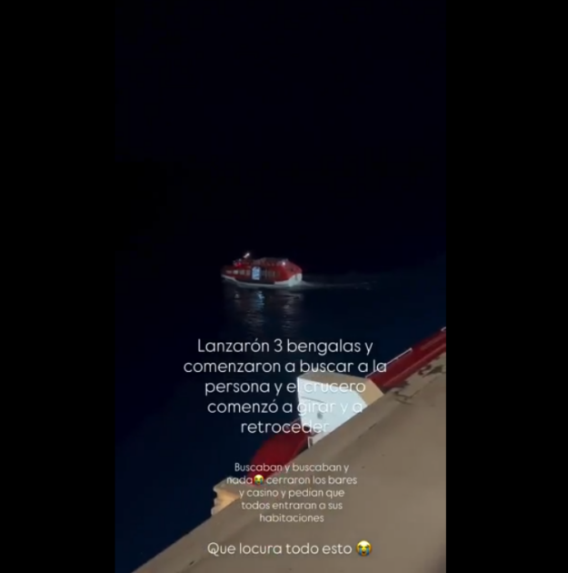 “Lanzaron tres bengalas y comenzaron a buscar a la persona y el crucero comenzó a girar y a retroceder. Buscaban y buscaban y nada”, precisó.