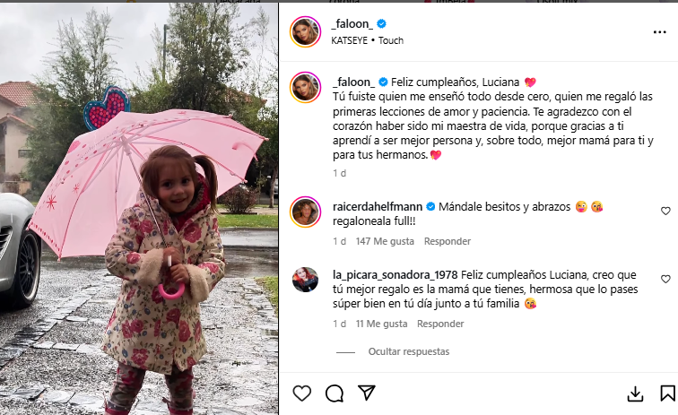 Faloon Larraguibel evidenció un emotivo momento en sus redes sociales tras festejar el cumpleaños de su primera hija, Luciana.