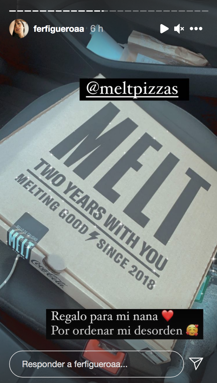 Todo comenzó cuando la joven colgó de sus historias de Instagram una foto de una pizza junto a la frase: “Regalo para mi nana, por ordenar mi desorden”.