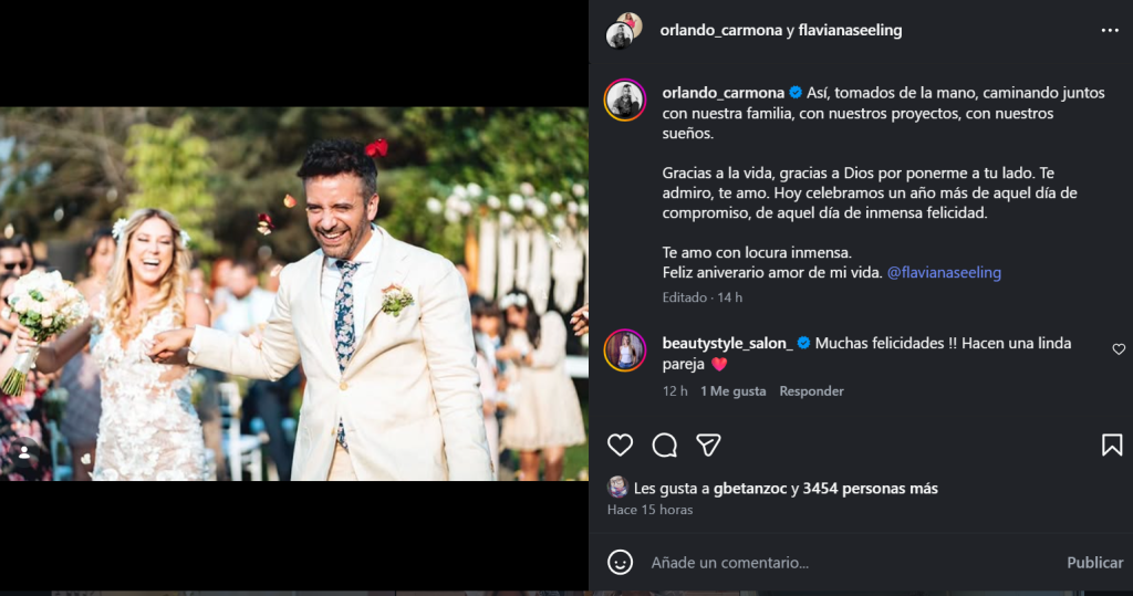“Gracias a la vida, gracias a Dios por ponerme a tu lado. Te admiro, te amo. Hoy celebramos un año más de aquel día de compromiso, de aquel día de inmensa felicidad”, continuó Orlando en el pie de foto.