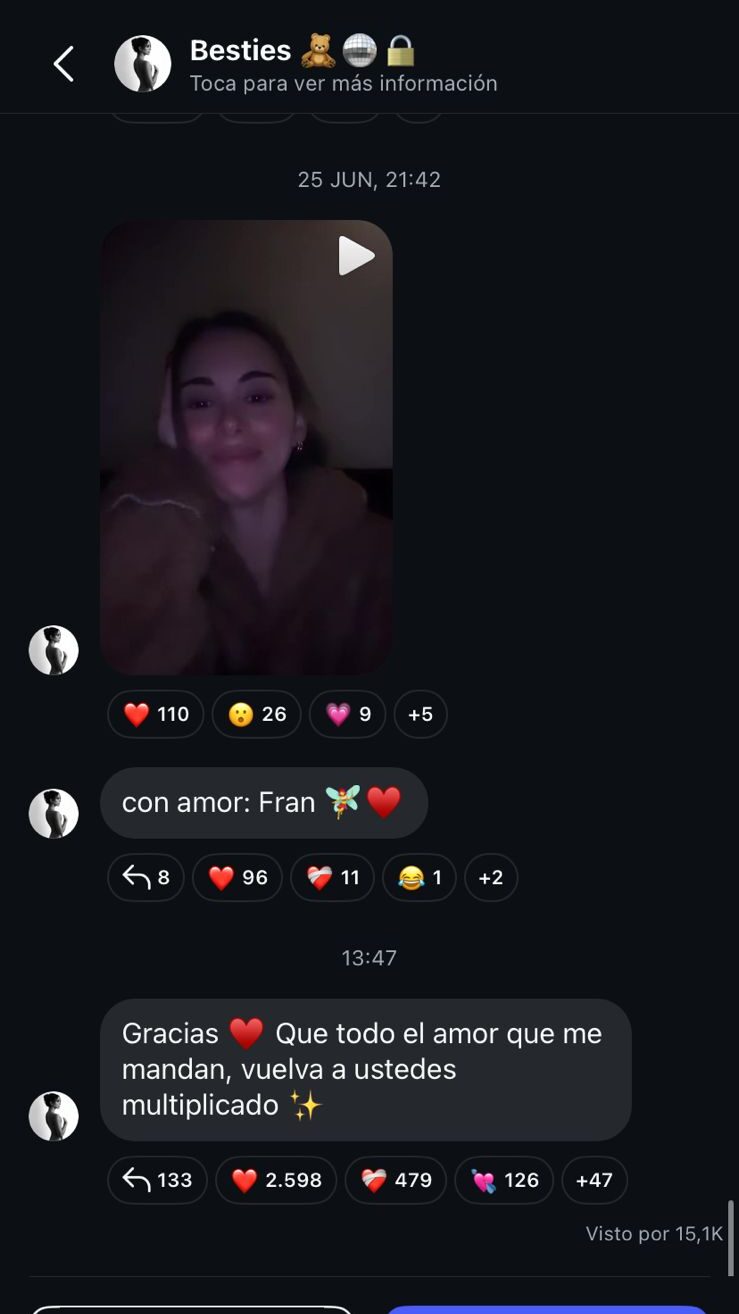 Sin embargo, este martes la influencer rompió el silencio a través de su canal de difusión ‘Besties’ en Instagram, donde entregó un breve, pero sentido mensaje a sus seguidores.
