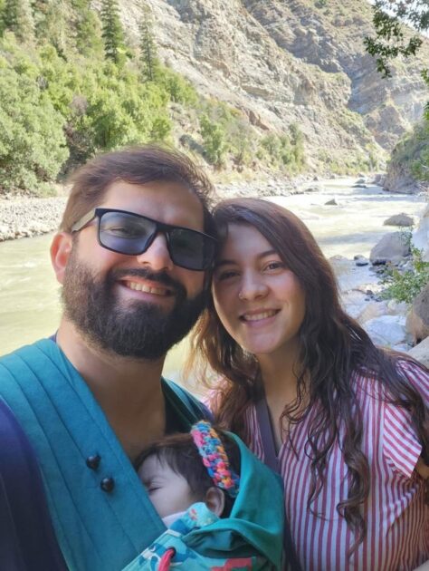La segunda imagen lo muestra junto a su pareja, Paula Carrasco, y la pequeña Violeta en un paseo al aire libre.