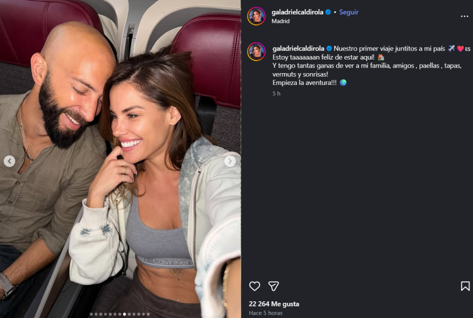En tanto, la chica reality destacó lo que más extraña de España: “¡Y tengo tantas ganas de ver a mi familia, amigos, paellas, tapas, vermuts y sonrisas! ¡Empieza la aventura!”.