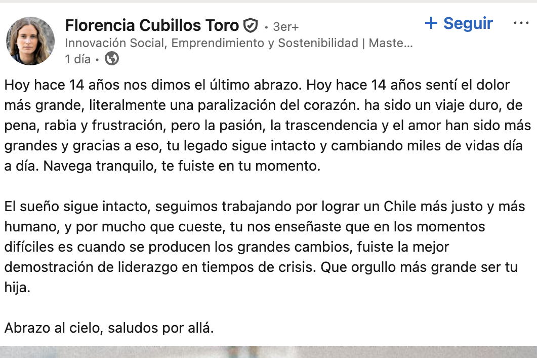 A más de una década de aquel día, su hija Florencia utilizó la red social LinkedIn para rendir un emotivo homenaje a su padre, recordando el impacto de su partida y el legado que dejó.