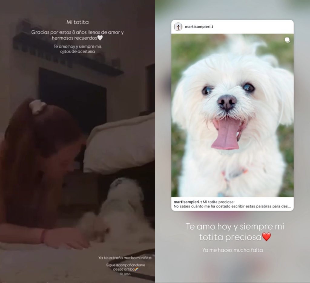 “Mi Totita, gracias por estos 8 años llenos de amor y hermosos recuerdos”, escribió la joven, compartiendo además un video en el que se le ve jugando con la mascota.