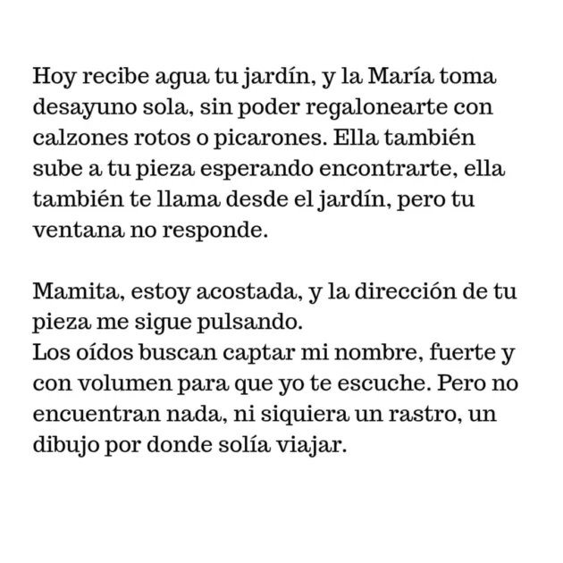“Ayer decidí escribirte un libro. Esta es la primera pieza, mamita”, redactó también Teresita Giacaman en Instagram, compartiendo capturas de algunas páginas que escribió.