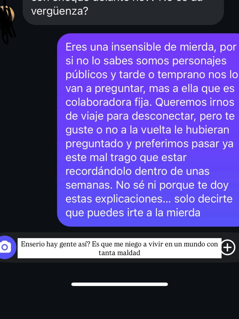 “No sé ni por qué te doy estas explicaciones, solo decirte que puedes irte a la mierda (sic)”, agregó.