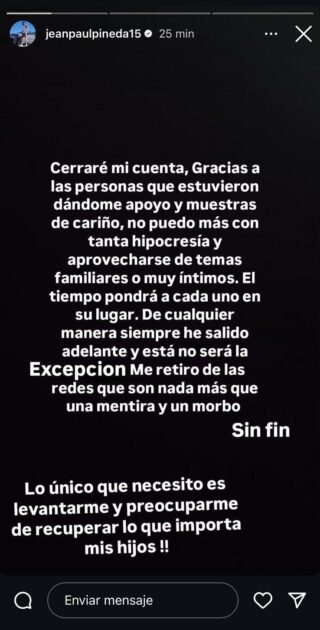 Jean Paul Pineda publicó misterioso mensaje que preocupó a sus fans: cerró su cuenta de Instagram