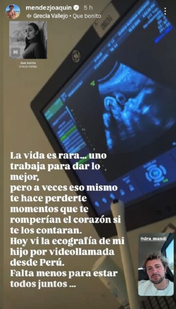 Y añadió: “Hoy vi la ecografía de mi hijo por videollamada desde Perú. Falta menos para estar todos juntos”.