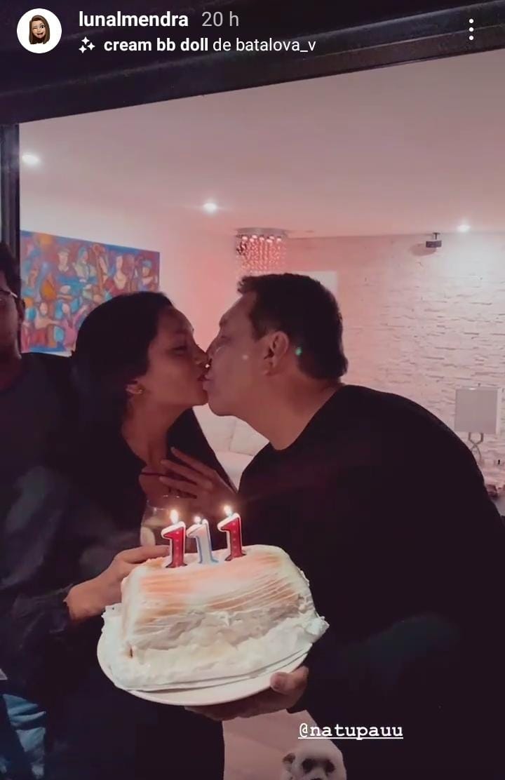 De hecho, dentro de los registros que publicó Natalia, se puede ver al periodista sujetando la torta mientras todos cantan cumpleaños feliz, para luego sellar el momento con un beso entre ambos.