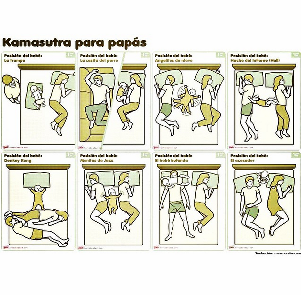 Así lo mostró la guapa Karen Paola con una infografía que enseña las divertidas posiciones que la pareja debe adoptar en su cama cuando el bebé duerme entre ellos.
