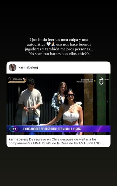 Si bien su publicación dio pie a nuevas críticas en su contra, Cony Capelli tomó las palabras de Karina y destacó el gesto que tuvo tras su segundo paso por Gran Hermano .