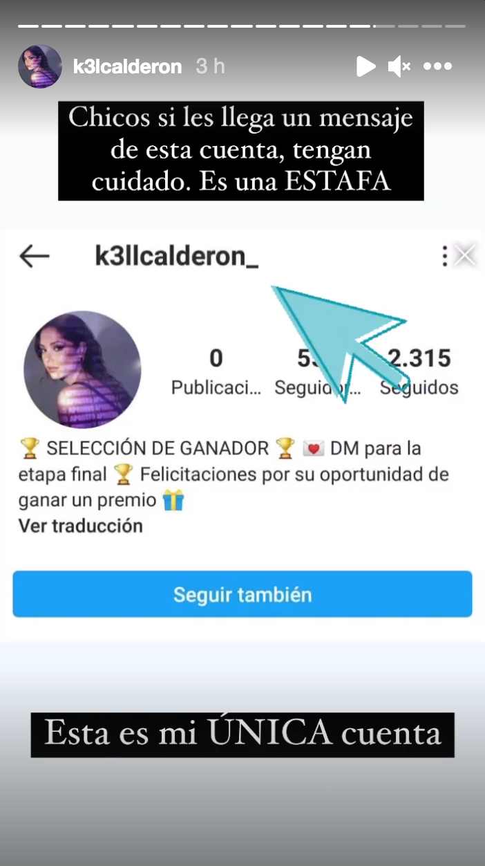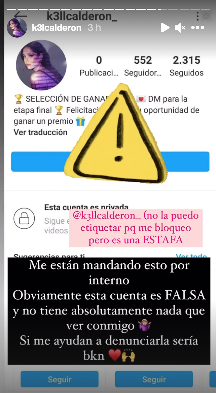 Una advertencia a sus seguidores de Instagram realizó Kel Calderón este miércoles, cuando denunció que una cuenta falsa hacía uso de su nombre para realizar estafas.
