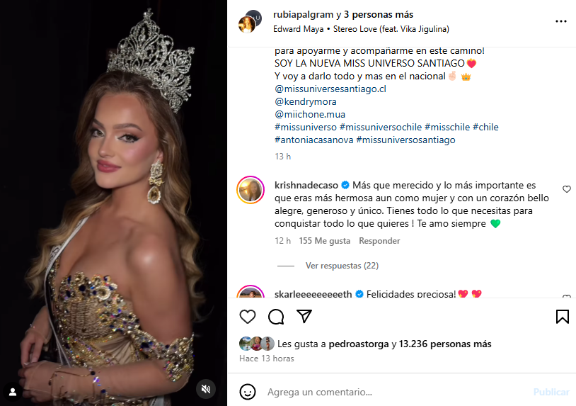 Krishna de Caso reaccionó al triunfo de su sobrina Antonia Casanova en Miss Universo Santiago