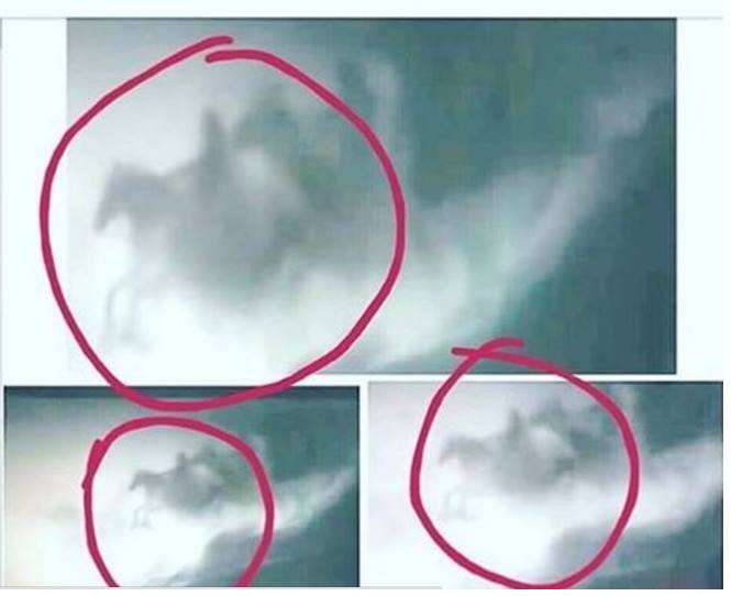 En la instantánea se puede apreciar un par de nubes con forma de dos jinetes sobre un cielo luminoso. La fotografía alcanzó cerca de 1500 likes y obtuvo comentarios como: “OMG, los jinetes del apocalipsis”, “Increíble”, “Maravilloso Dios”, y “Yo también veo dos jinetes”, entre otros.