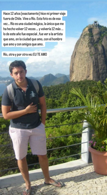 “Hace 12 años, exactamente, hice mi primer viaje fuera de Chile. Vine a Río. Esta foto es de esa vez… Río es una ciudad mágica, la única que me ha hecho volver 12 veces… y volvería 12 más”, comentó en una historia de Instagram .