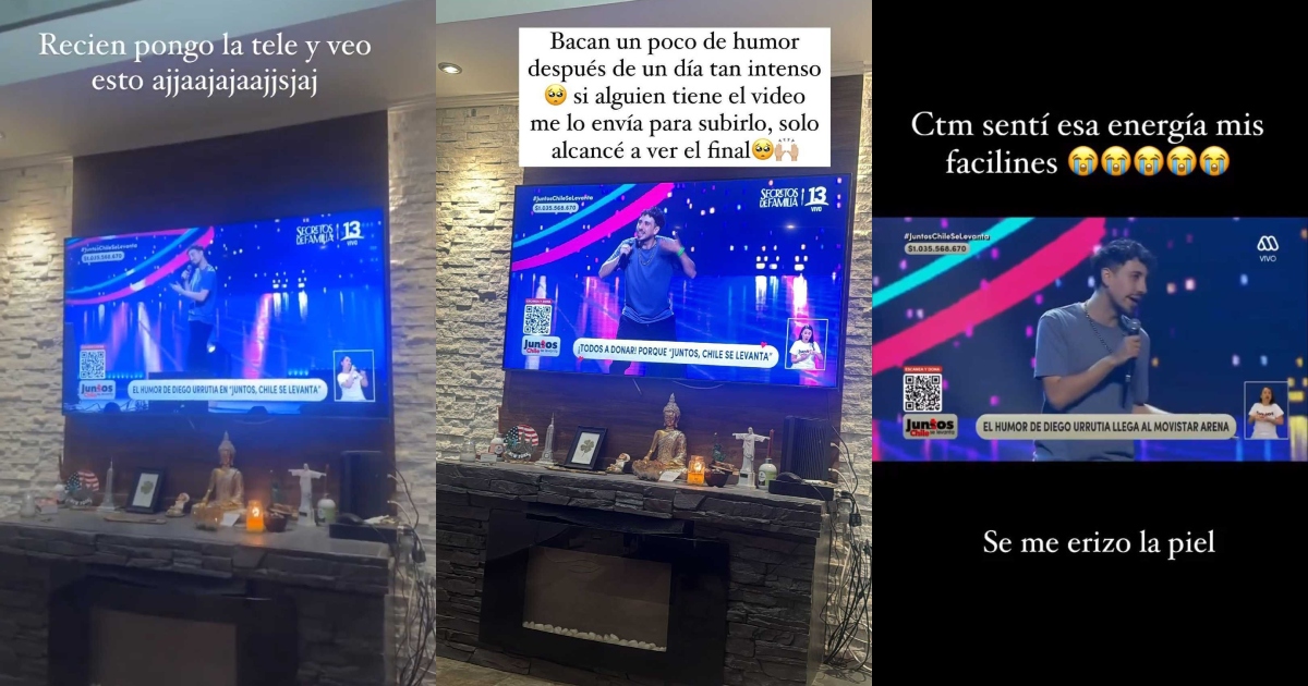 La noche del viernes, Diego Urrutia se presentó en el escenario evento solidario Juntos Chile se levanta, donde hizo reír al público y los televidentes.