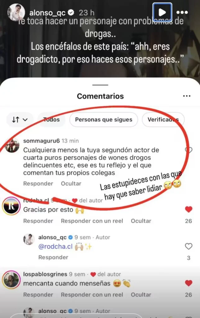Las redes sociales pueden ser un arma de doble filo. Así lo dejó en evidencia el actor de El Jardín de Olivia, Alonso Quintero, quien expuso un odioso comentario que recibió en redes y también aprovechó de enfrentar al emisor.