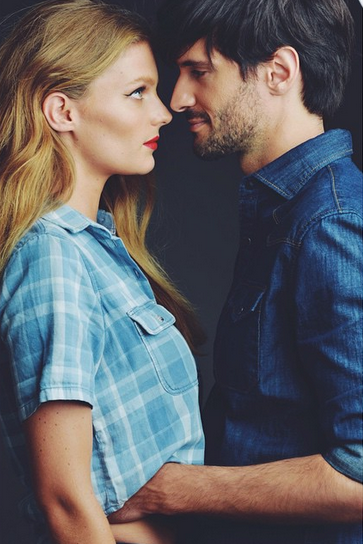 En la estática aparece el atractivo matrimonio. Ella lo mira fijamente a los ojos, mientras él demuestra su contención sosteniéndola de su cintura.