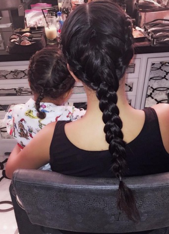 La tierna imagen de Kim Kardashian haciéndose el mismo peinado que su hija