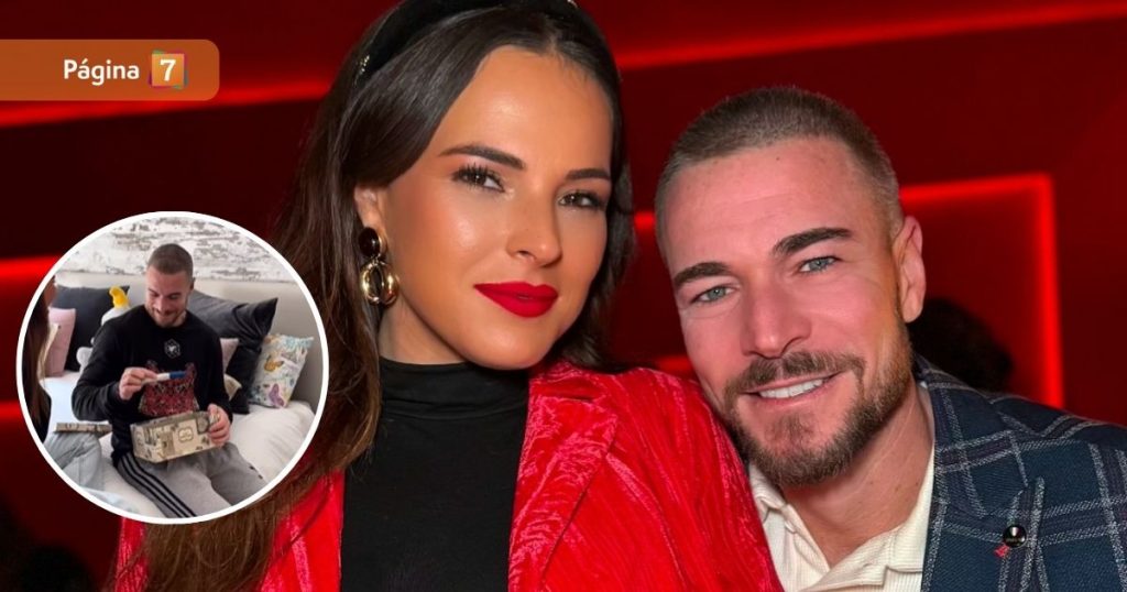 El influencer toma el dispositivo y sonríe, besando a su novia y mostrándose conmovido por la sorpresa.