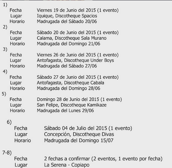 “Para toda esa gente de chile que me pedian que volviese, quiero informarles que Vuelvo. Aquí os dejo los lugares por donde estaré”, escribió Liz.