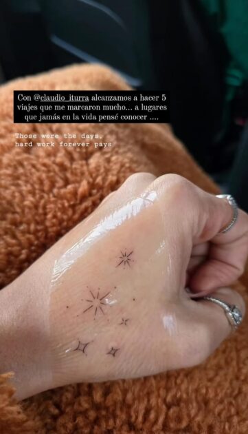 “Con Claudio alcanzamos a hacer cinco viajes que me marcaron mucho… a lugares que jamás en mi vida pensé conocer”, escribió junto a una imagen de su mano tatuada con cinco estrellas.