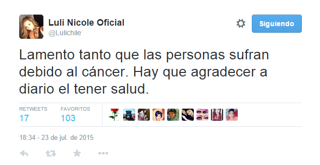 “Estoy muy contenta y emocionada al fin mi abuelita le gano al CANCER. Gracias diosito por darle una nueva oportunidad… Ahora la seguiré cuidando ya que es una mujer luchadora, Animosa y muy positiva. Gracias Dios mío!! LOS MILAGROS EXISTEN2” (sic), comentó Luli en aquella oportunidad.