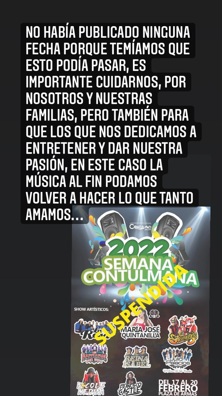 En específico, Quintanilla se refirió a la cancelación de su show en Contulmo, al que incluso aseguró no le quiso hacer demasiada promoción, producto del alza de contagios de COVID-19 registrado durante las últimas semanas.