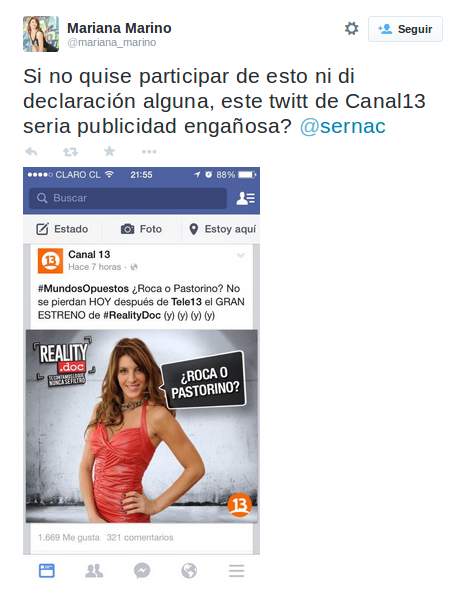 Fue tanta la molestia de la ex de Ronny “Dance” que utilizó su cuenta de Twitter para “denunciar” al programa frente al Servicio Nacional del Consumidor (Sernac):